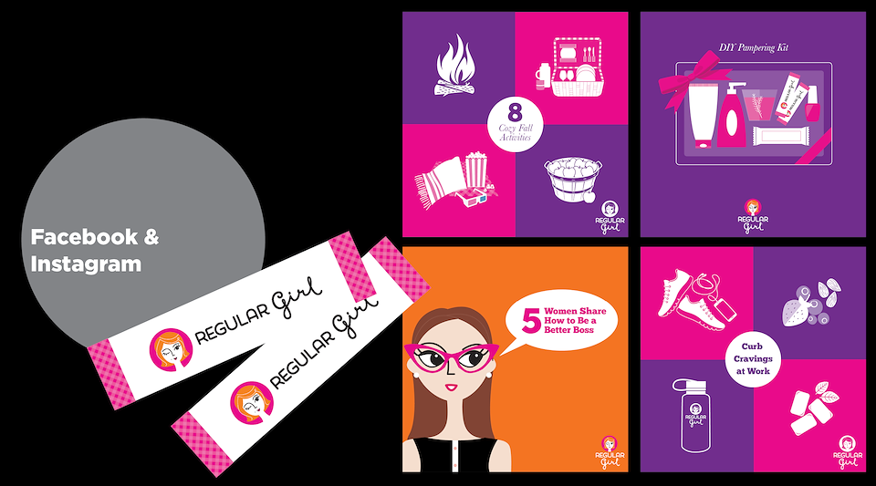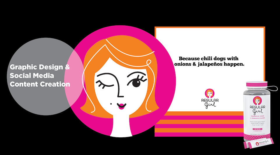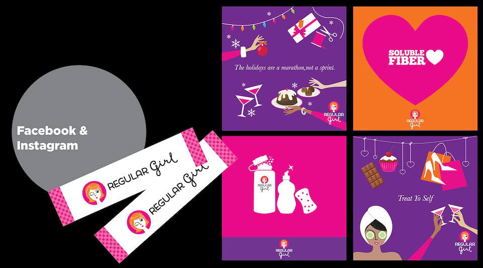 Developed the simple and savvy illustration style behind the social media marketing for Regular Girl®, the prebiotic fiber and probiotic supplement for the woman whose life is anything but regular.